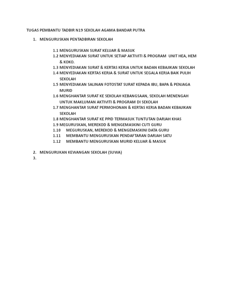 Tugas Pembantu Tadbir N19 Sekolah Agama Bandar Putra Pdf